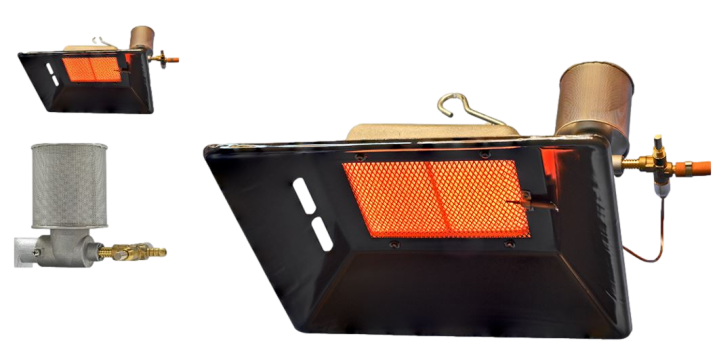Alke 81 (serie 81-F/FT) es un equipo cerámico de alta capacidad, diseñado para cubrir áreas grandes, idealmente para hasta 1000 aves. Funciona con propano o gas natural, con una capacidad calorífica ajustable entre